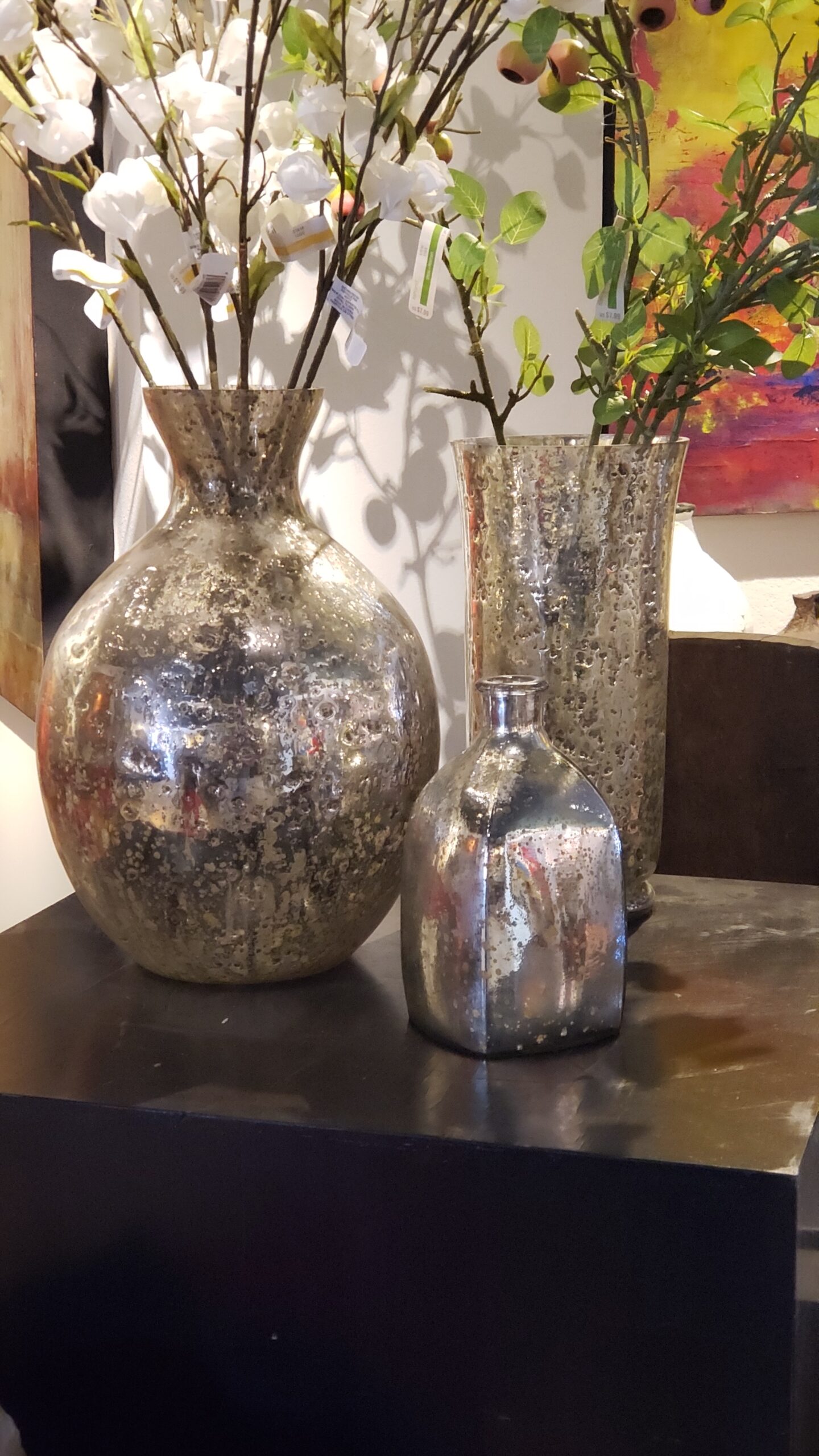 Large mercury glass vase $375