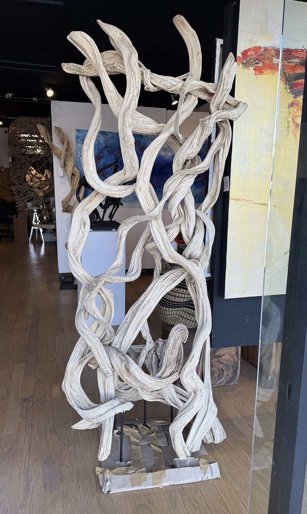 77 h x 54 w x 26 d on 18.5 x 22 x 4 metal stand $9,600